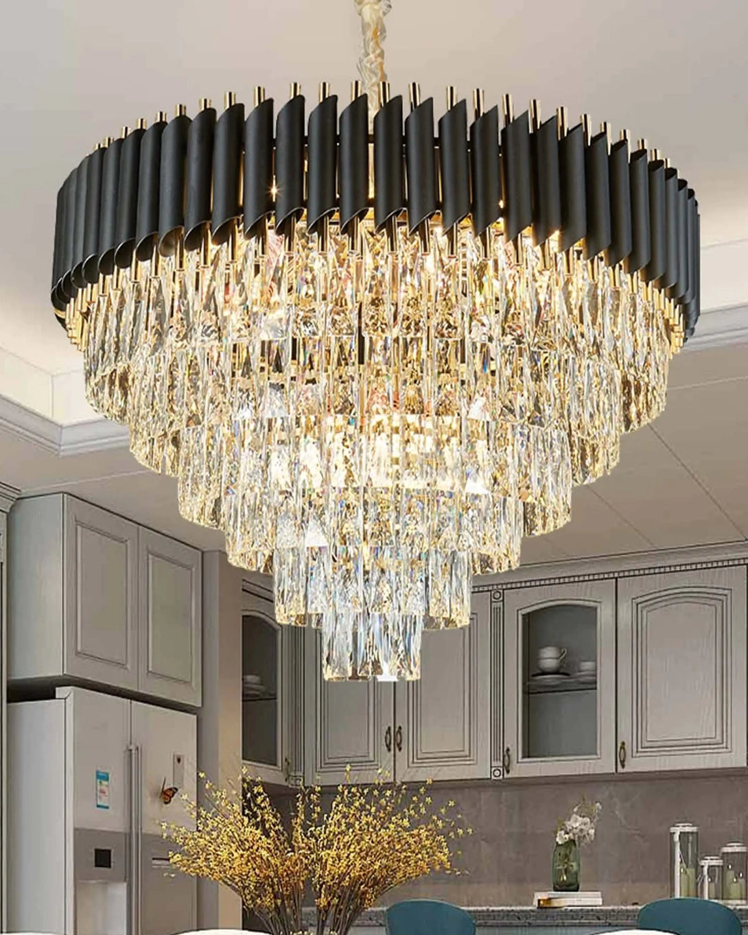 The Denali Classic Crystal Glass Luxury Chandelier Light by Angie Homes encapsulates timeless elegance with a hint of contemporary flair. Featuring gracefully cascading crystal strands and an artfully curved metal frame, Denali creates a luminous focal point that elevates any space. Its radiant glow and elegant design make it a refined choice for both traditional and modern interiors.