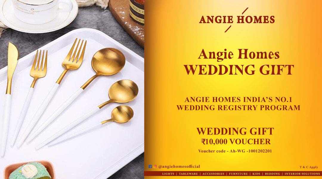 Angie Homes India's No.1 Wedding Registry Program & Gifting a gift card is no less than an awesome wedding gift for your loved ones, with the card as a gift, they can use the amount to shop according to their choices. You can buy the gift voucher in physical form so that you can wrap it and hand it over as a gift, or you can also email the digital card to your loved ones who live far away.