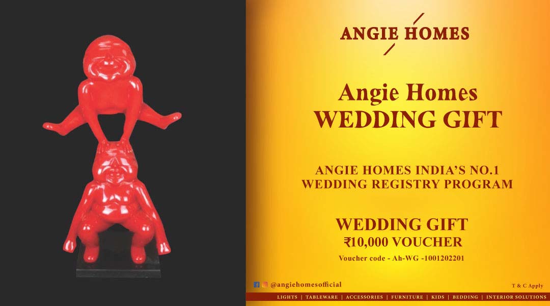 Angie Homes India's No.1 Wedding Registry Program & Gifting a gift card is no less than an awesome wedding gift for your loved ones, with the card as a gift, they can use the amount to shop according to their choices. You can buy the gift voucher in physical form so that you can wrap it and hand it over as a gift, or you can also email the digital card to your loved ones who live far away.
