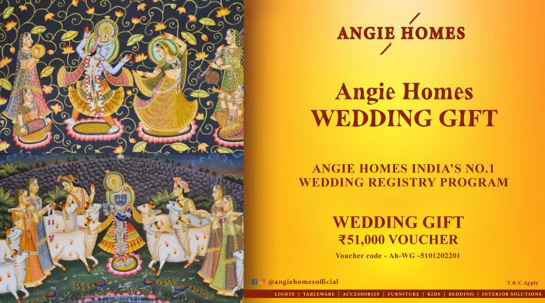 Angie Homes India's No.1 Wedding Registry Program & Gifting a gift card is no less than an awesome wedding gift for your loved ones, with the card as a gift, they can use the amount to shop according to their choices. You can buy the gift voucher in physical form so that you can wrap it and hand it over as a gift, or you can also email the digital card to your loved ones who live far away.