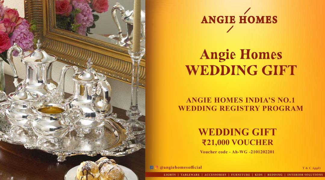 Angie Homes India's No.1 Wedding Registry Program & Gifting a gift card is no less than an awesome wedding gift for your loved ones, with the card as a gift, they can use the amount to shop according to their choices. You can buy the gift voucher in physical form so that you can wrap it and hand it over as a gift, or you can also email the digital card to your loved ones who live far away.
