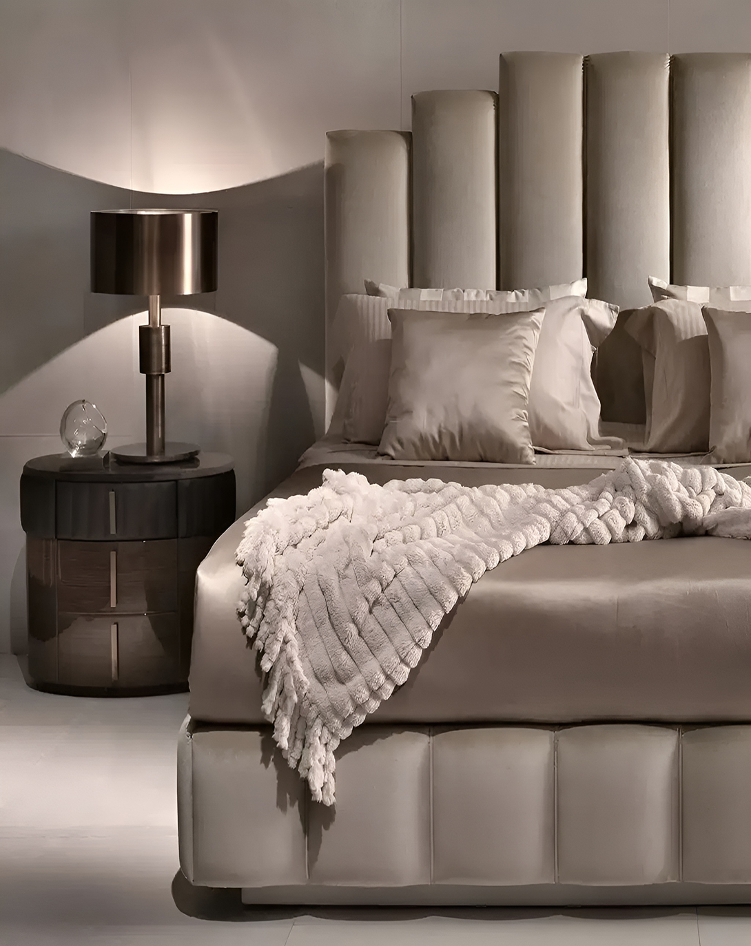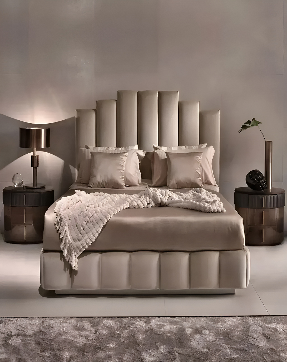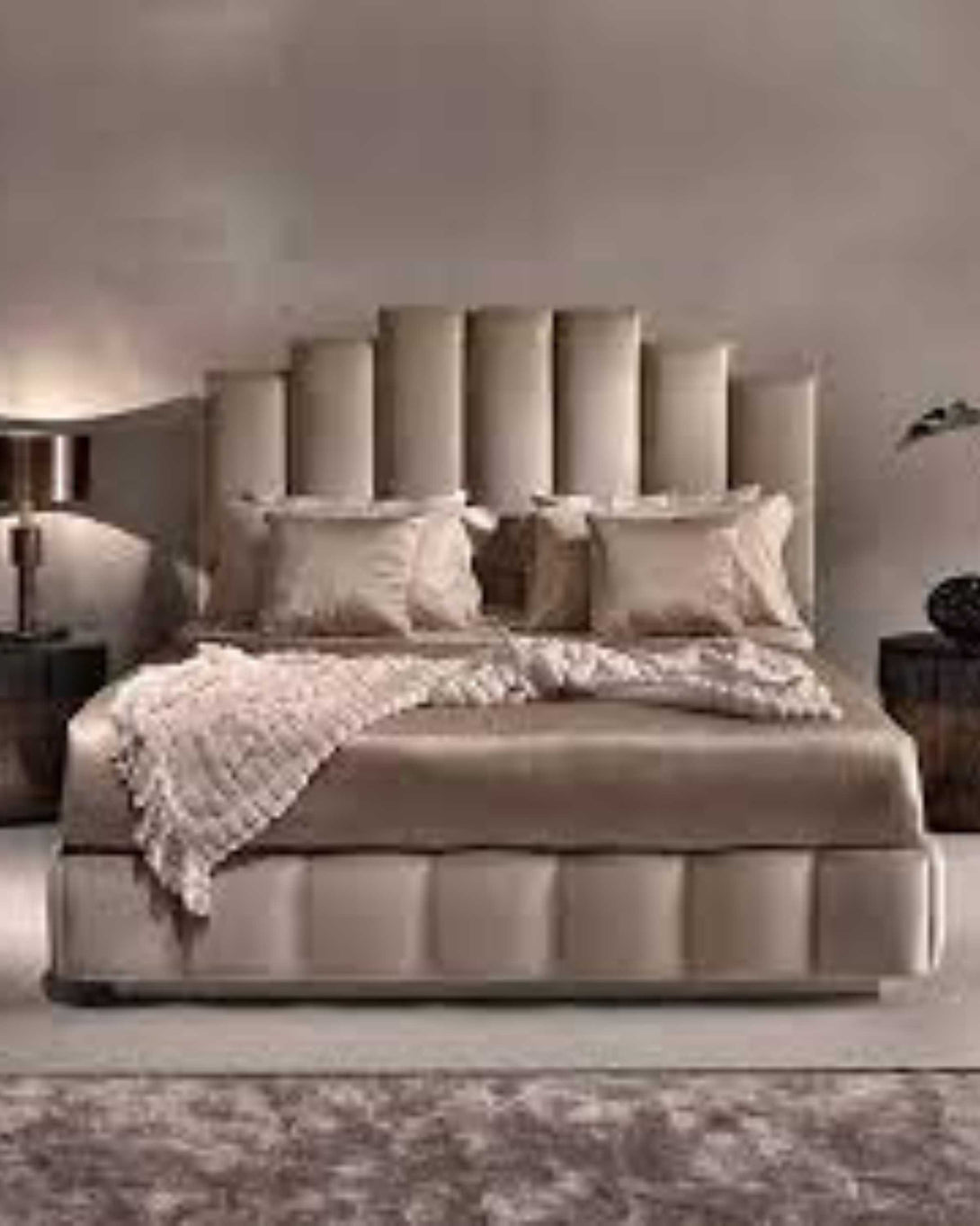Beige Luxury Wood Bed with Headboard | king/Queen size bed with storage ANGIE HOMES