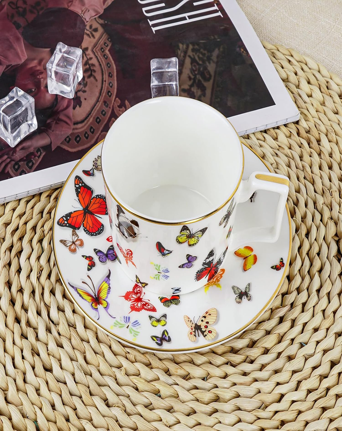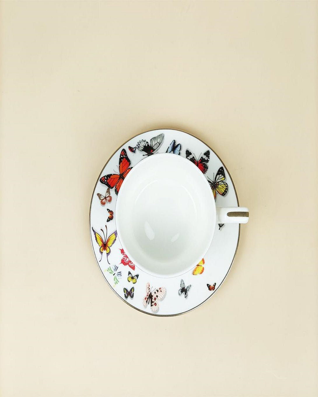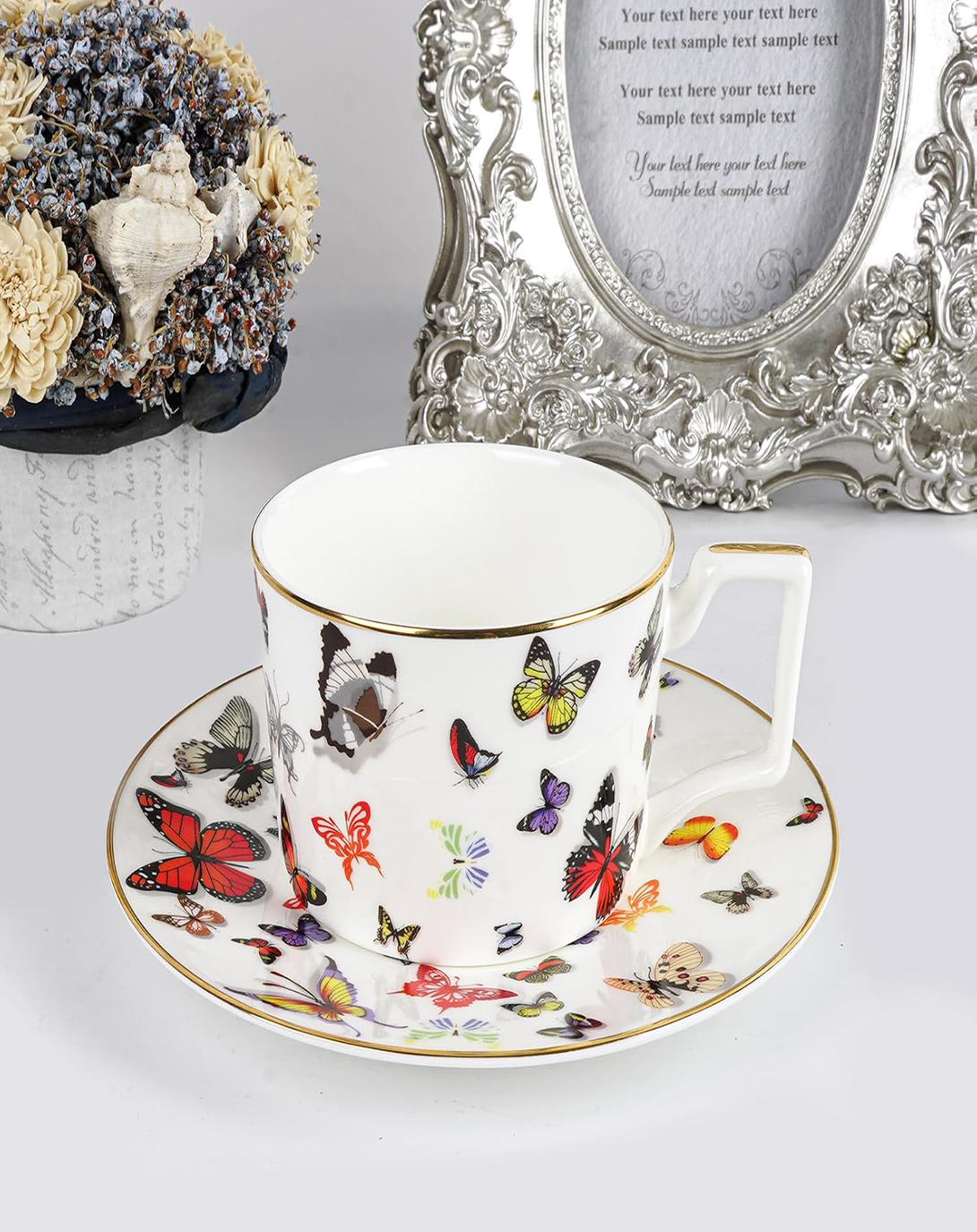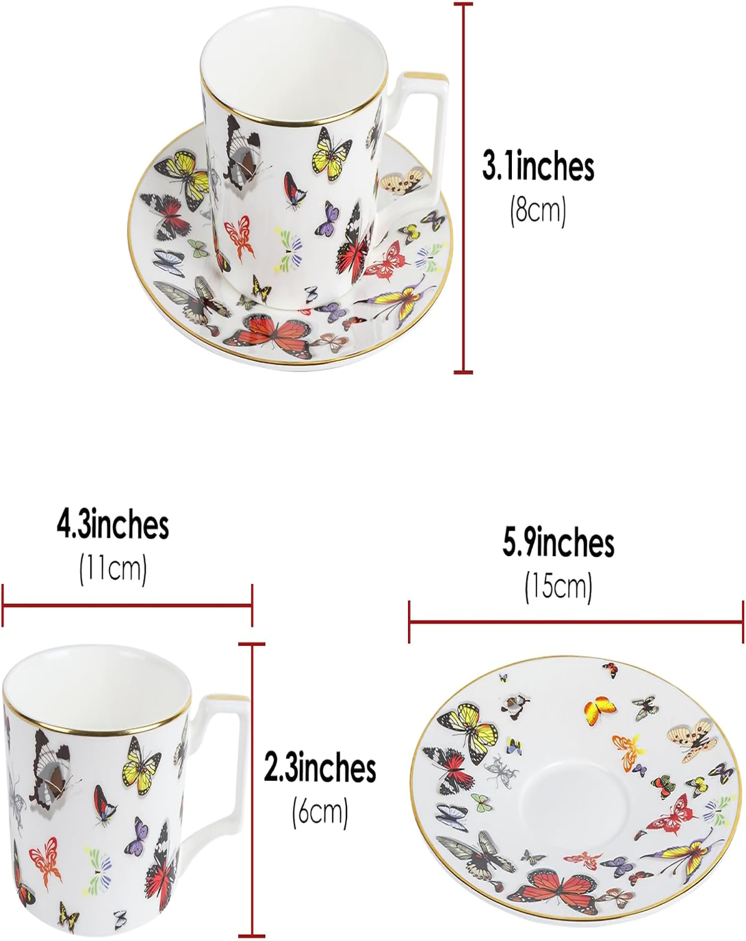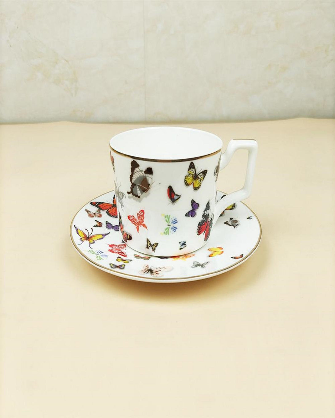 Butterfly White Printed Bone China Cups and Saucers Set
