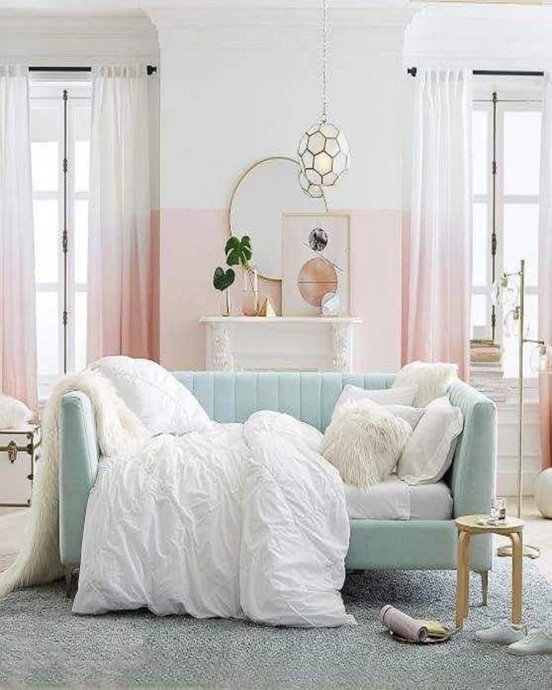 • Two Seater Fabric Sofa with Soft Colors For Kids Room having Vertical Tufting at the Back.