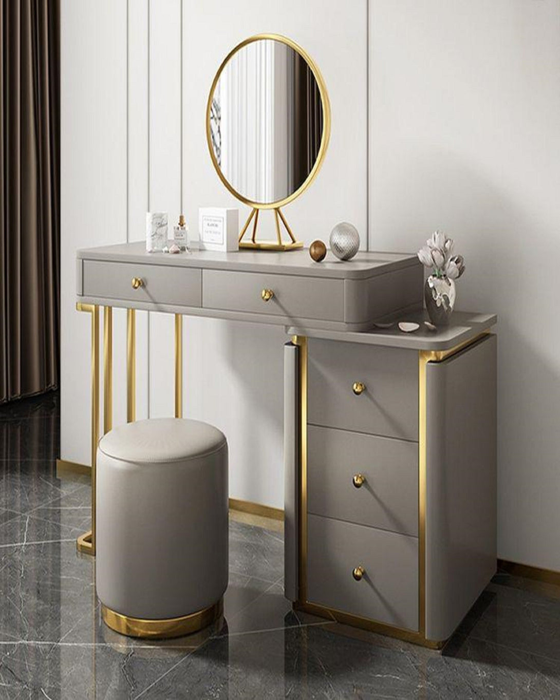 Marble Top Grey Kids Study Desk with 3 Drawer & Metal Legs Liven up your with a marble top grey kids desk that can be configured to fit any kid's room, made from high-quality materials & craftsmanship by Angie Homes . Daffy Grey Kids Desk: Desk Made of Board and Grey Laminate with Three Drawers on the side and two on the front. It has metal Legs.
