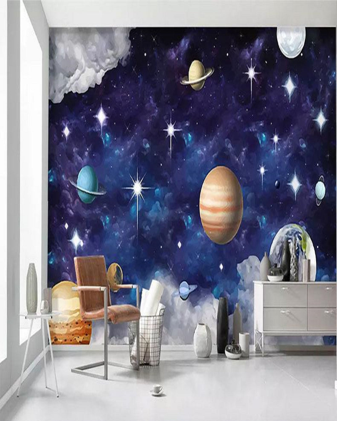 Beautiful Solar System Wall Paper To Decorate The Wall For Kids