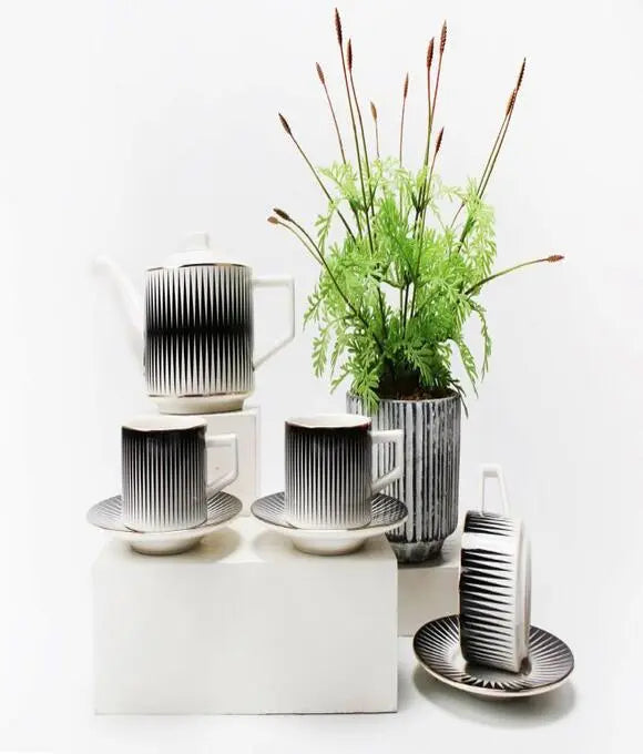 Classic Porcelain and Bone china set with an elegant look to have your green Tea. it comes with cup, Saucer and Kettle.