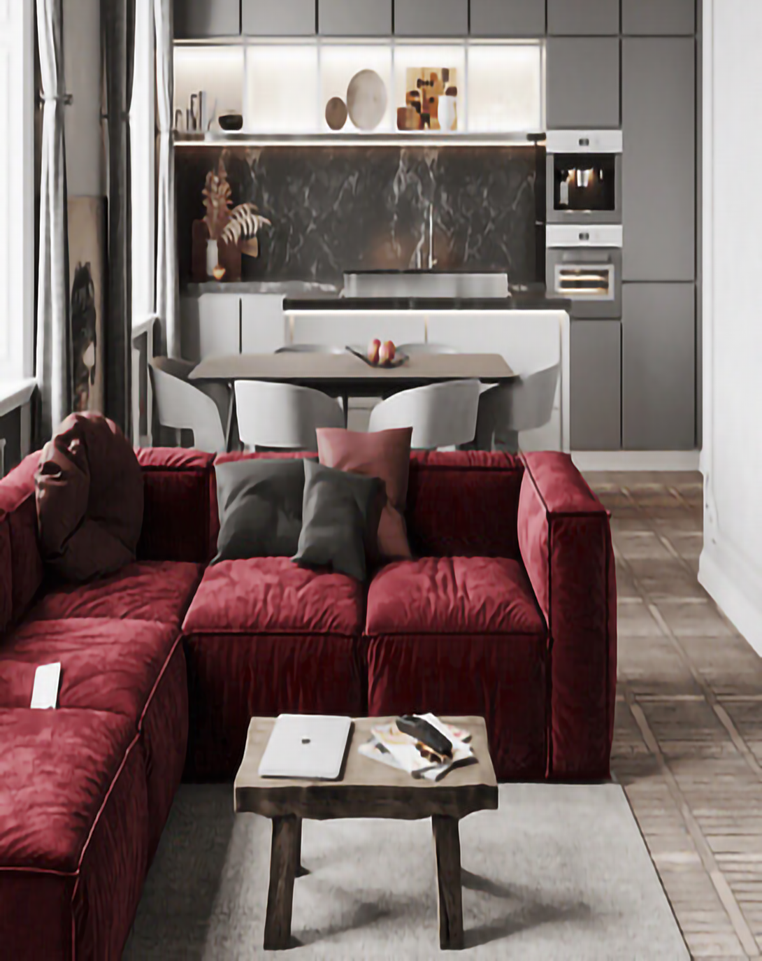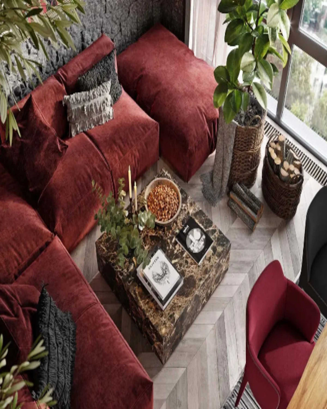 This Laynne Maroon L shape sofa features a modern, five-seater or six-seater design and a separate corner unit, providing plenty of seating and styling options. Create a sophisticated and comfortable living space in your home with this high-quality sofa.