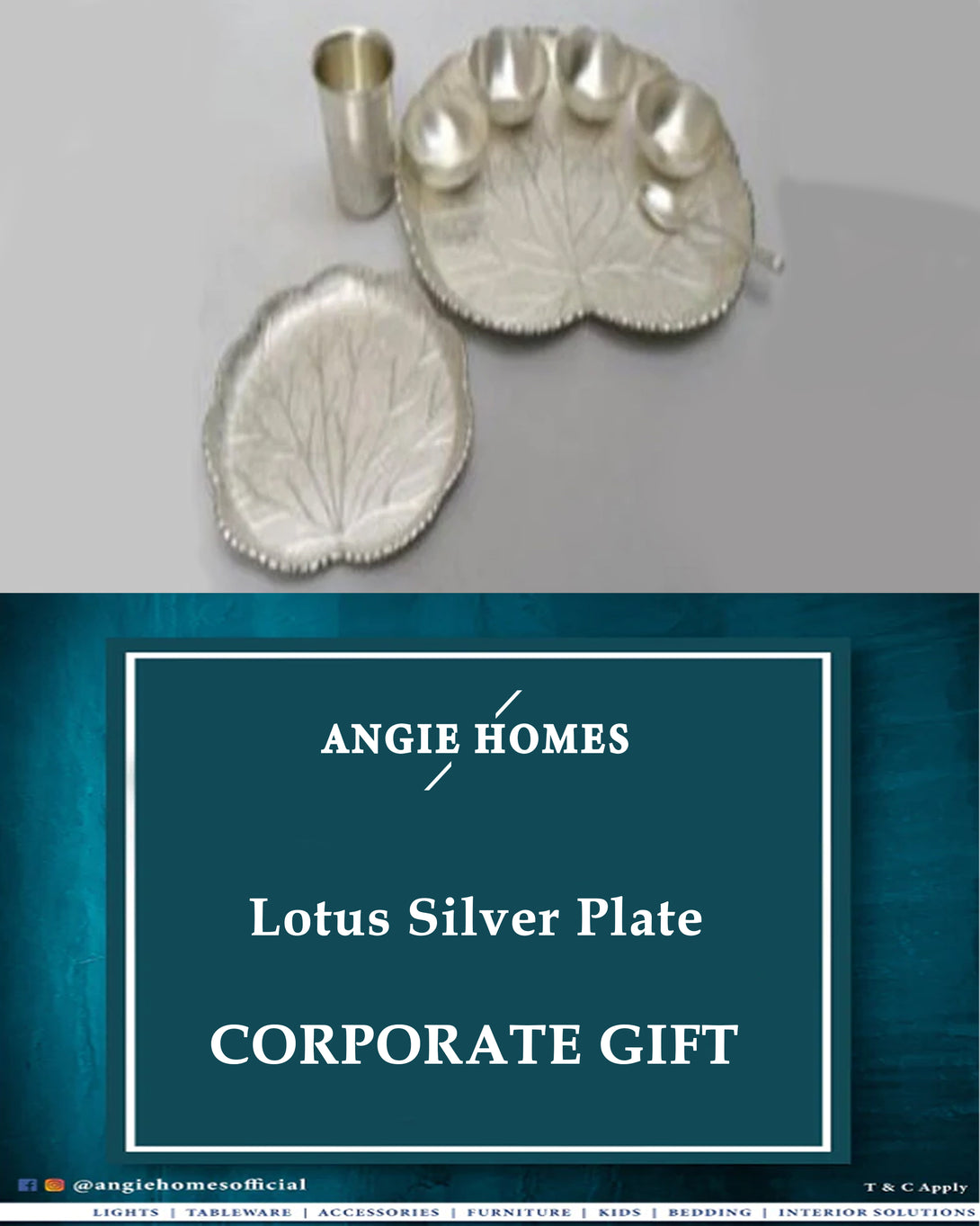 Beautifully Handcrafted Silver Plate in Leaf Shape for traditional lovers. A typical South Indian Dinner Plate. Perfect Wedding Gift. When you want the most beautiful Lotus leaf silver plate Thali for Weddings, House Warming & Corporate Gift Hampers, then you must consider Angie Homes.