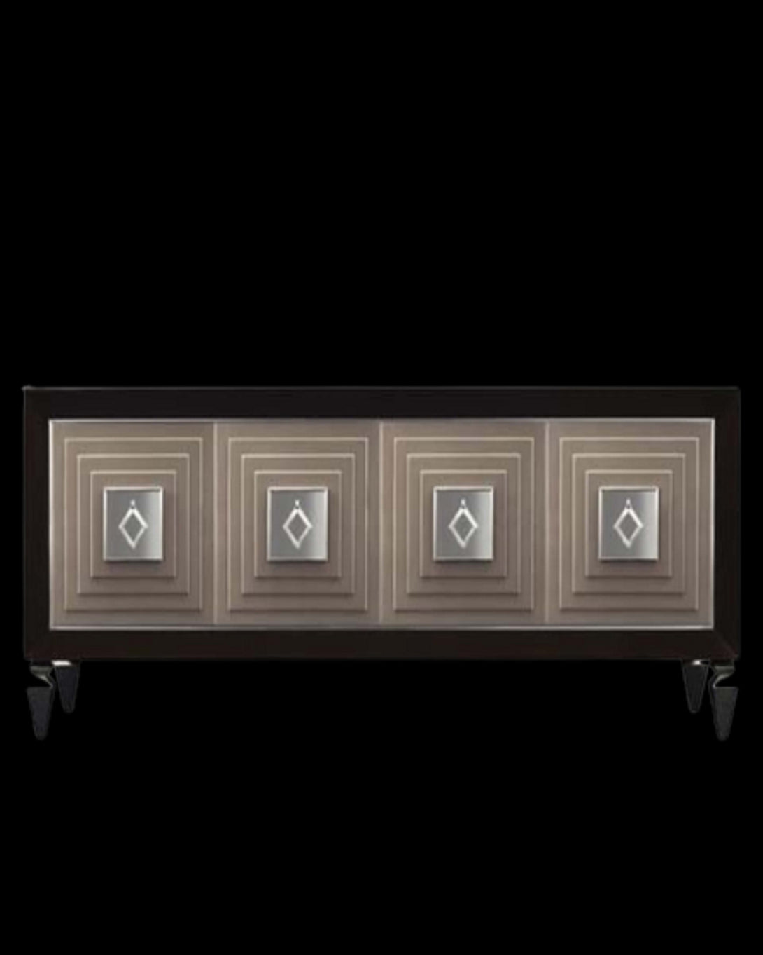 A credenza is a sideboard, particularly one where a central cupboard is flanked by glass display cabinets, and usually made of burnished and polished wood and decorated with marquetry. In modern times, a credenza is more often a type of sideboard used in the home, office spaces.
