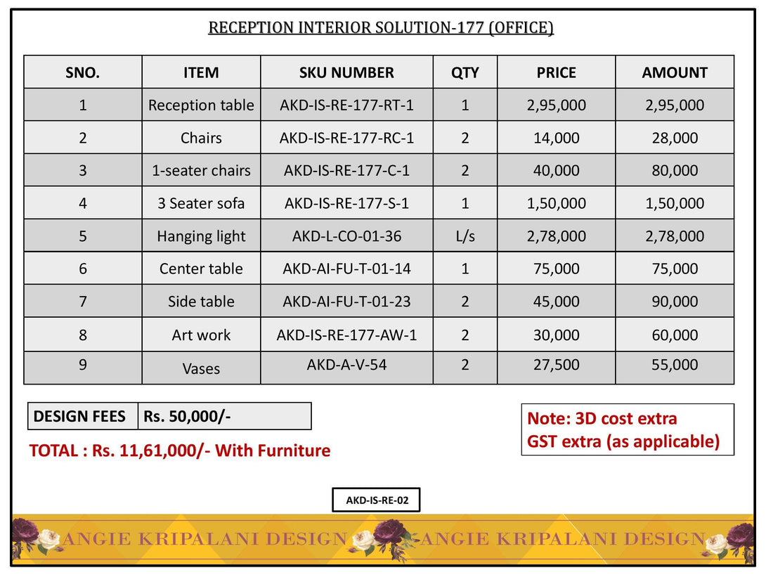 Interior designer Angie Kripalani stylish dream homes - Office Reception area | MD side tables ~ wardrobes | wall art carpets | accessories and elevations
