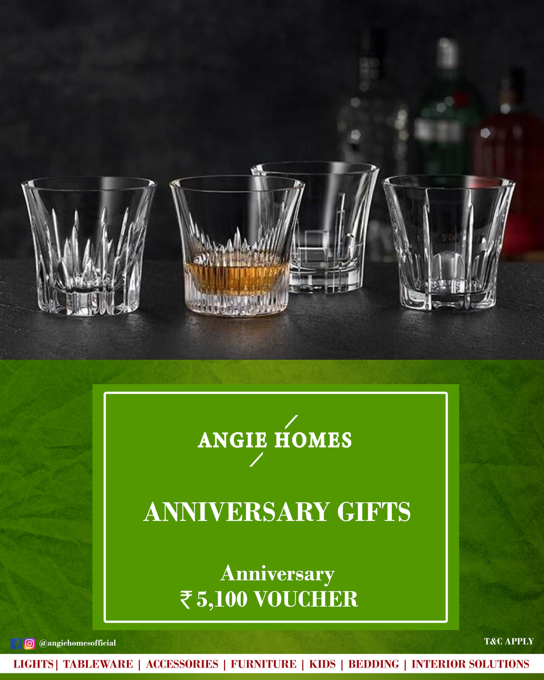 Angie Homes Gift Voucher is a perfect way to enlighten couples and let them enjoy the incredible. There are other such gift ideas that mesmerize couples. You can consider anniversary gifts like the driving experience gift voucher, Tableware, Cutlery, Art Work, Towels, Bedding, Mirror, Photo Frame, Wine Champagne & Whiskey Glasses, and Vases to bring smiles to their faces. The Anniversary gift voucher is an ideal gift for persons who desires to drive luxurious and fancy.