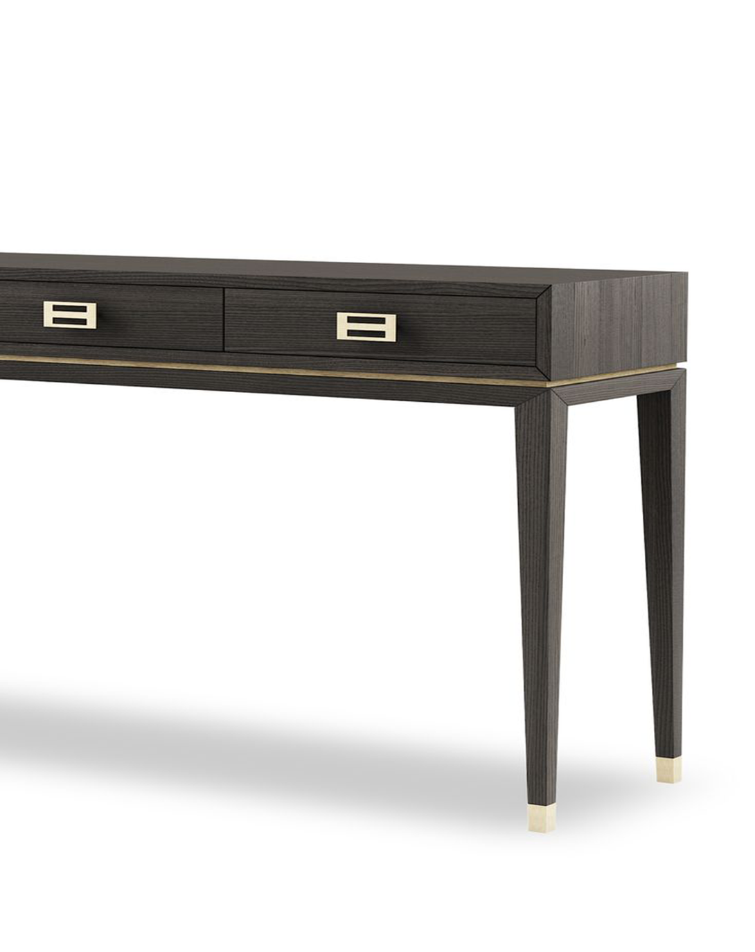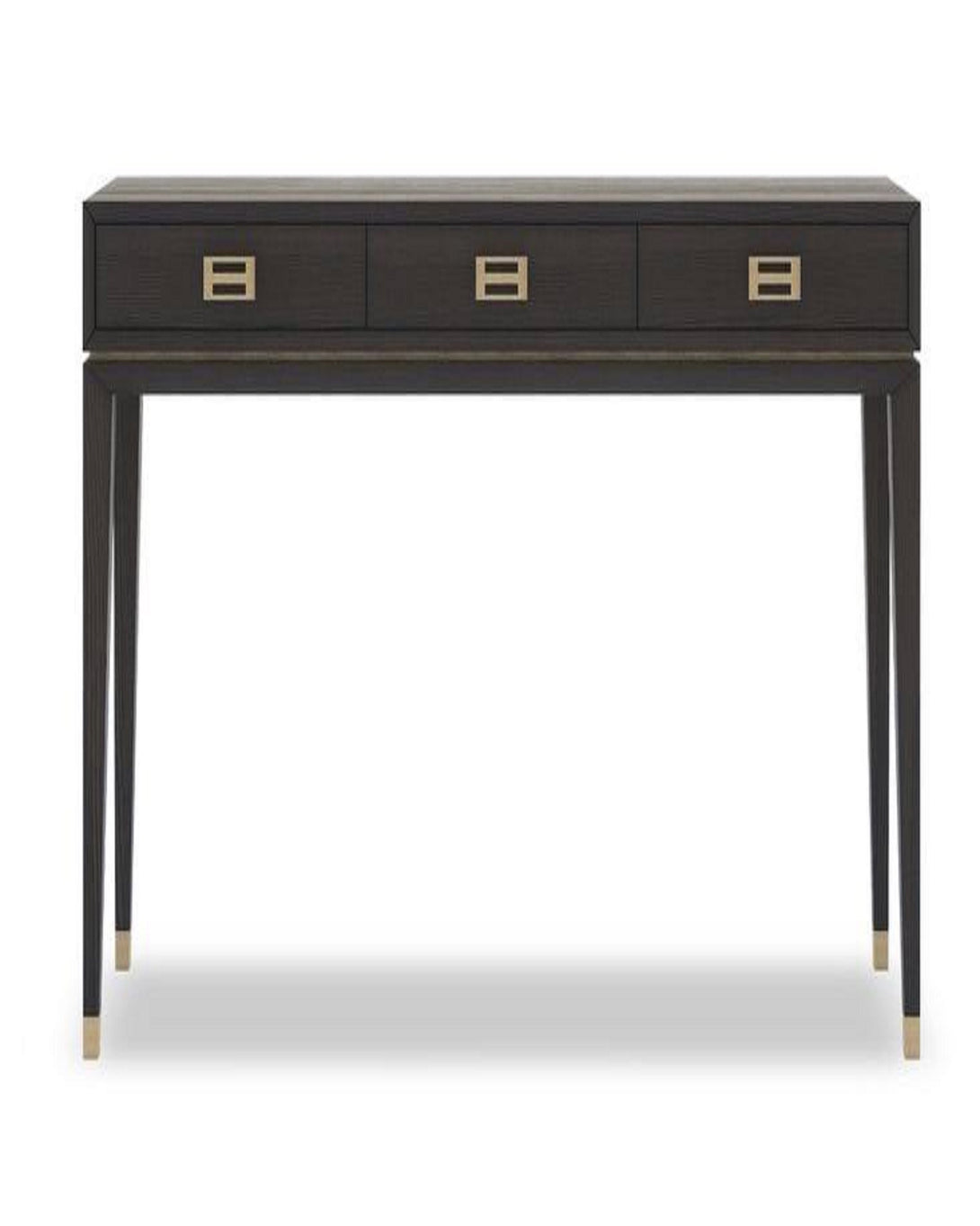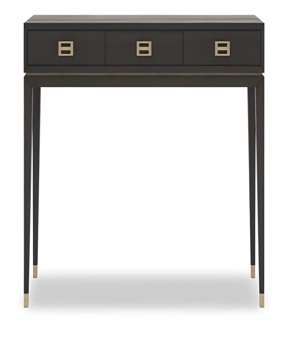 Palm Dark Grey Desk: Desk Made of Board and Laminate with three drawers having metal knobs. It has sleek wooden legs
