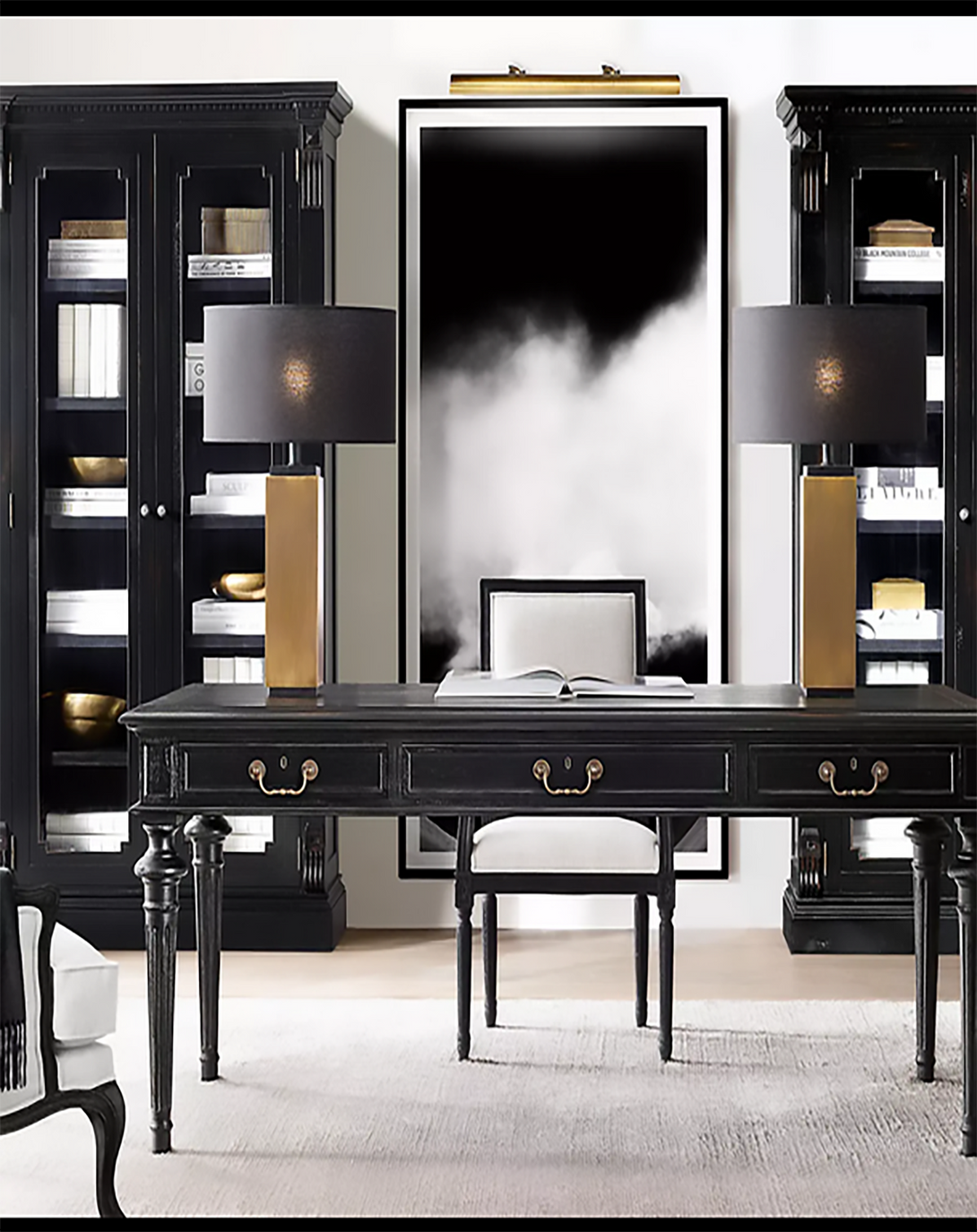 A desk or bureau is a piece of furniture with a flat table-style work surface used in a school, office, home or the like for academic, professional or domestic activities such as reading, writing, or using equipment such as a computer.
