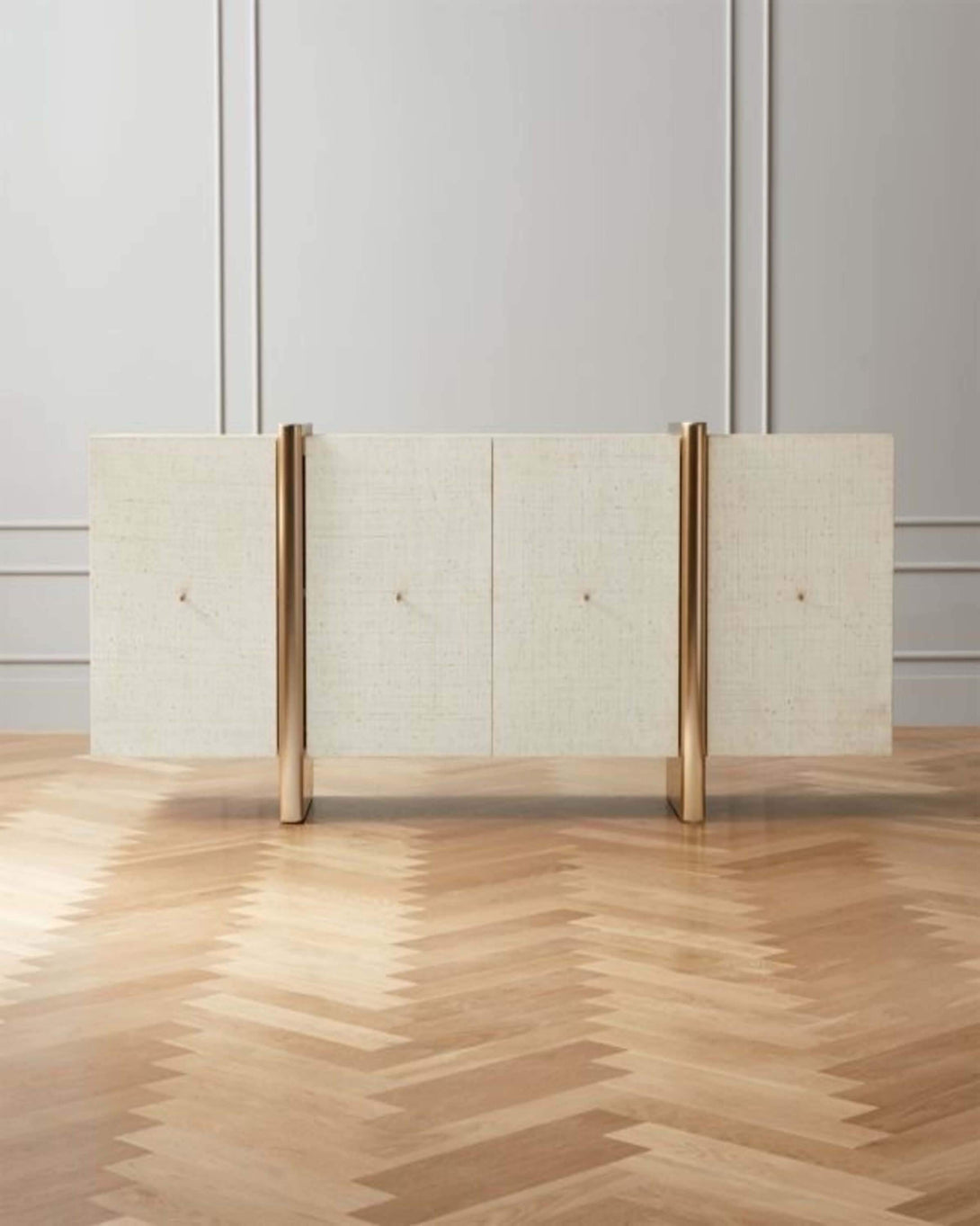 A credenza is a sideboard, particularly one where a central cupboard is flanked by glass display cabinets, and usually made of burnished and polished wood and decorated with marquetry. In modern times, a credenza is more often a type of sideboard used in the home, office spaces.