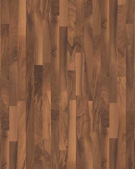 Pergo Walnut, 3-strip Laminated Flooring - Wood look laminate flooring with red and gold colouring. Superior scratch and scuff resistance with PermaMax Protection. Great for high traffic areas and all living spaces
