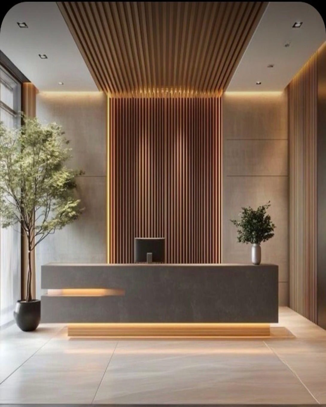 Reception desk - a counter (as in a hotel) where guests are received. counter - table consisting of a horizontal surface over which business is transacted.