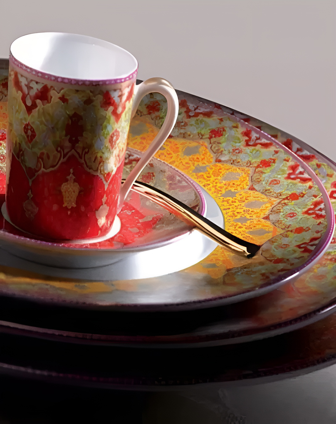 Floral Yellow Red Bone China Plate Cup Set