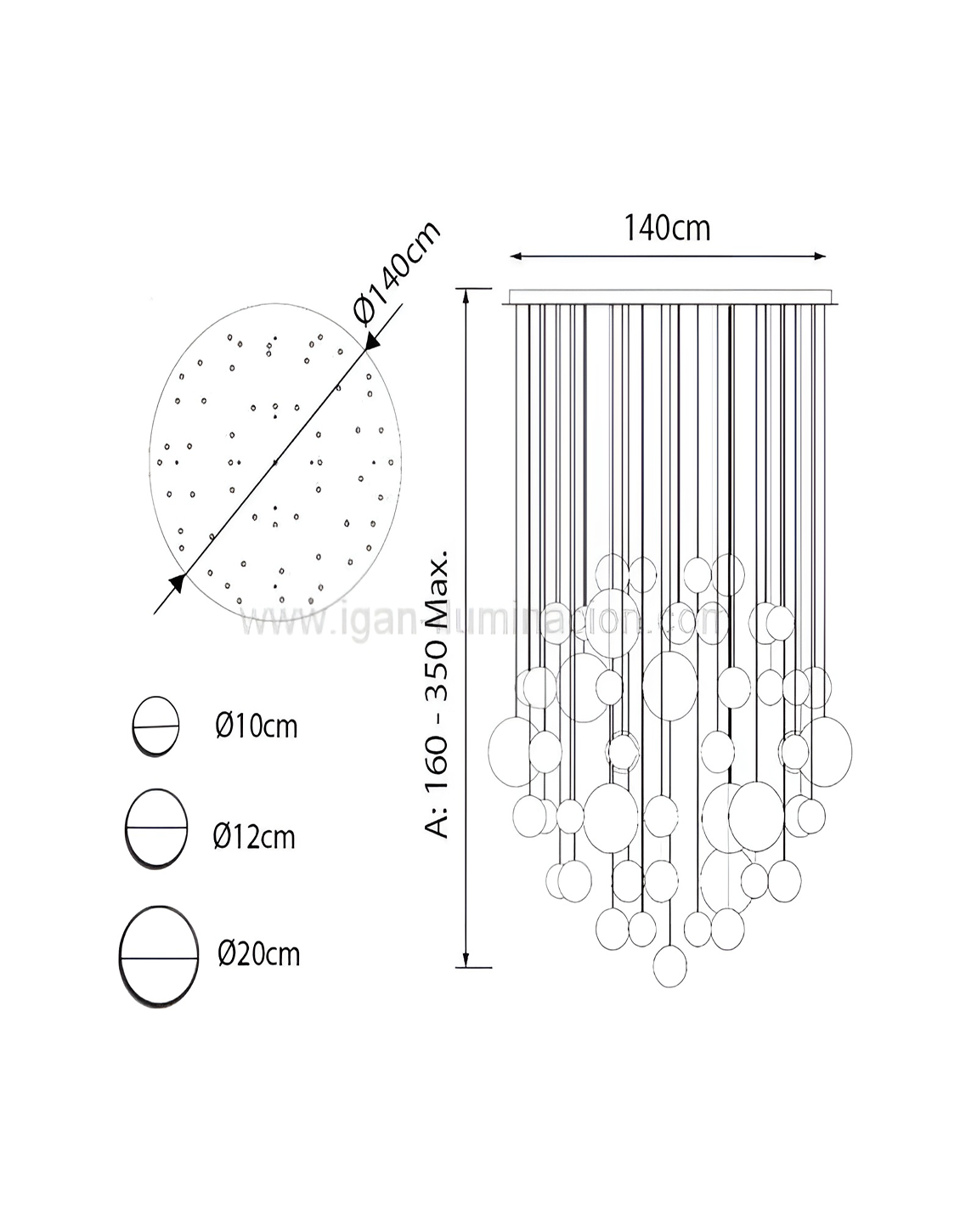 - Adjustable hanging length to fit ceilings of different heights