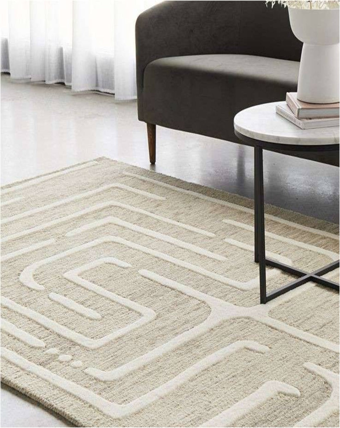 - Nestip: Style the handwoven rug with throws or coffee tables.